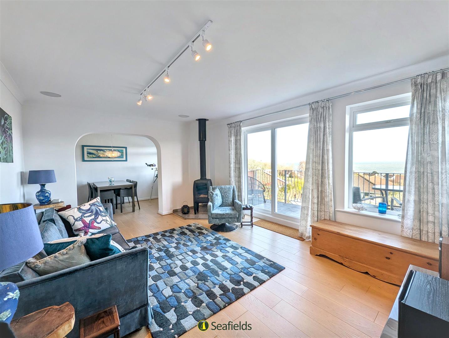 Enjoying SUPERB SEA VIEWS, this cleverly extended detached home is laid out over 3 floors, offering 'upside down' accommodation to benefit from the wonderful outlook. The superbly presented spacious and bright property comprises a lovely upper floor sitting room (with log burner)